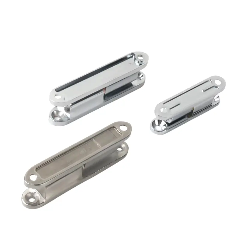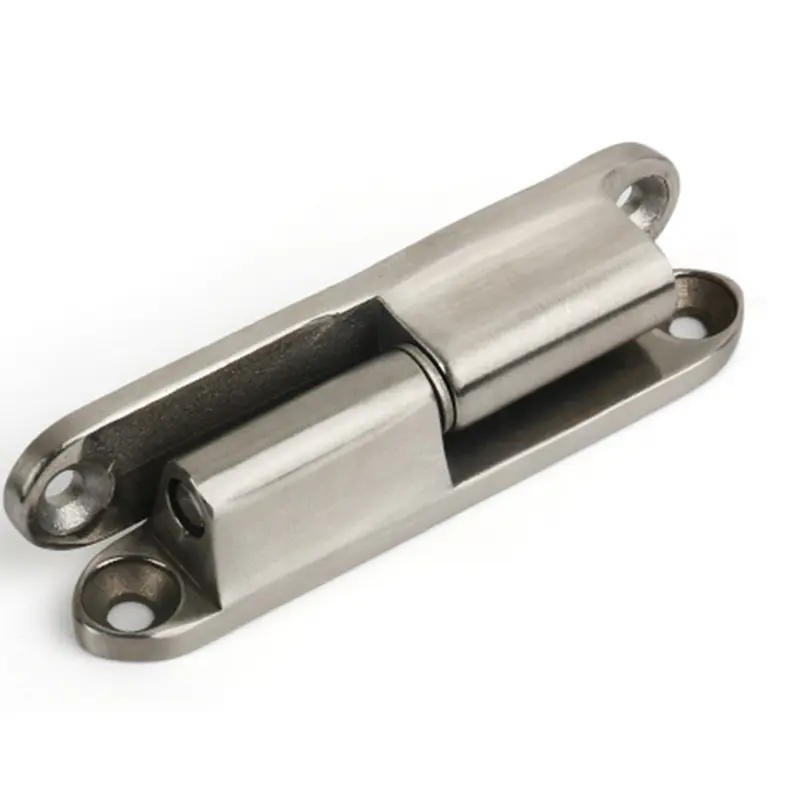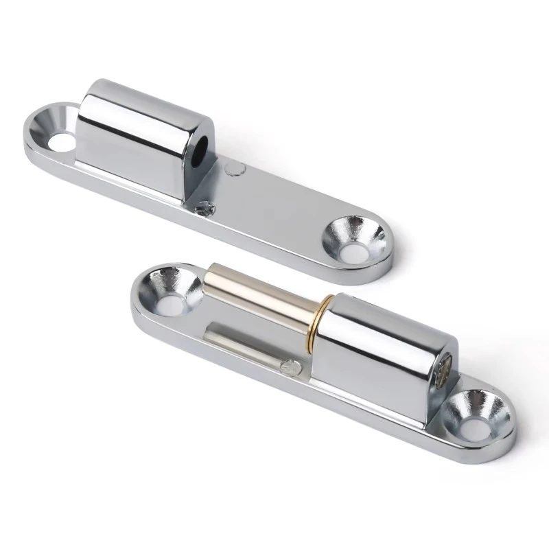 Esta serie de bisagras está disponible en dos materiales: la versión de aleación de zinc se trata con enchapado cromado brillante para un efecto espejo. La versión de acero inoxidable mantiene el color original del metal con un acabado cepillado.