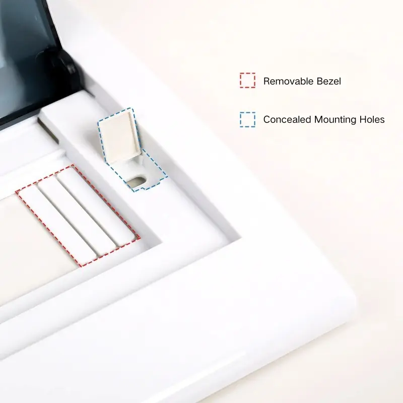 Los agujeros y ranuras estandarizados se reservan en el panel, que es adecuado para los interruptores de circuitos convencionales, dispositivos de protección de fugas y medidores inteligentes, y admite sumar o restar circuitos. La superficie del panel se puede marcar con nombres o etiquetas de circuitos para una identificación rápida y solución de problemas, adecuada para aplicaciones de circuito múltiple.