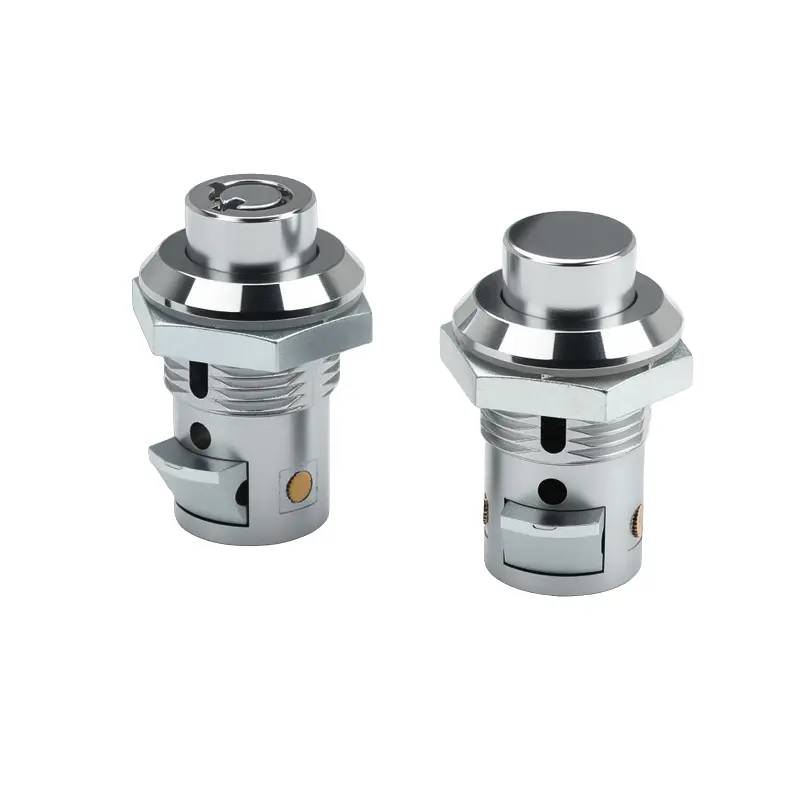 La cerradura de cilindro de aleación de zinc con operación por botón para máquinas expendedoras presenta un diseño sin llave para una operación sencilla, lo que la hace particularmente adecuada para escenarios que requieren un acceso rápido. El modelo de cerradura con pasador ofrece mayor seguridad. Ambos modelos tienen dimensiones de montaje idénticas, por lo que los consumidores pueden elegir el que mejor se adapte a sus necesidades.